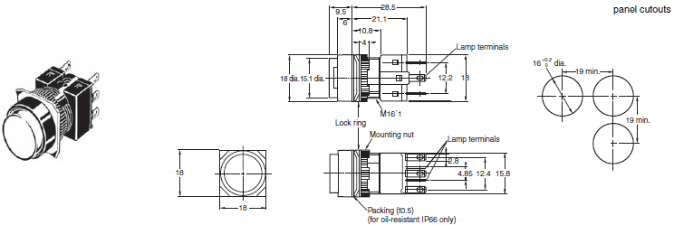 Pushbutton Switch (Detachable) (Lighted/Non-Lighted) (Cylindrical 16-dia.)