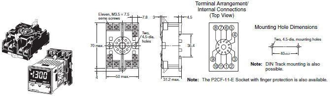 Note: Use the P2CF-08 and P3G-08 Sockets for models without alarms, and use the P2CF-11 and P3GA-11 Sockets for models with alarms.