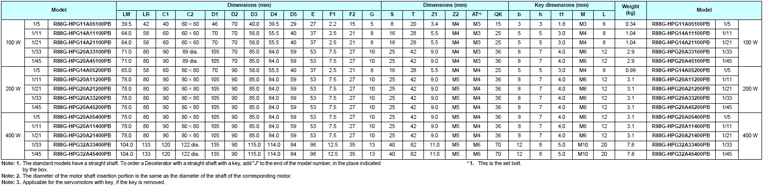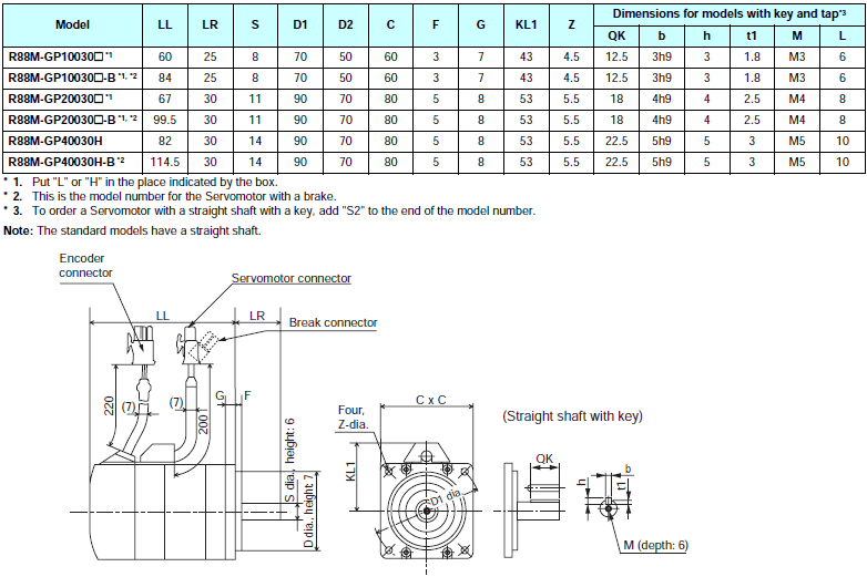 R88M-G20030L (-S2), R88M-G20030H (-S2), R88M-G40030H (-S2)