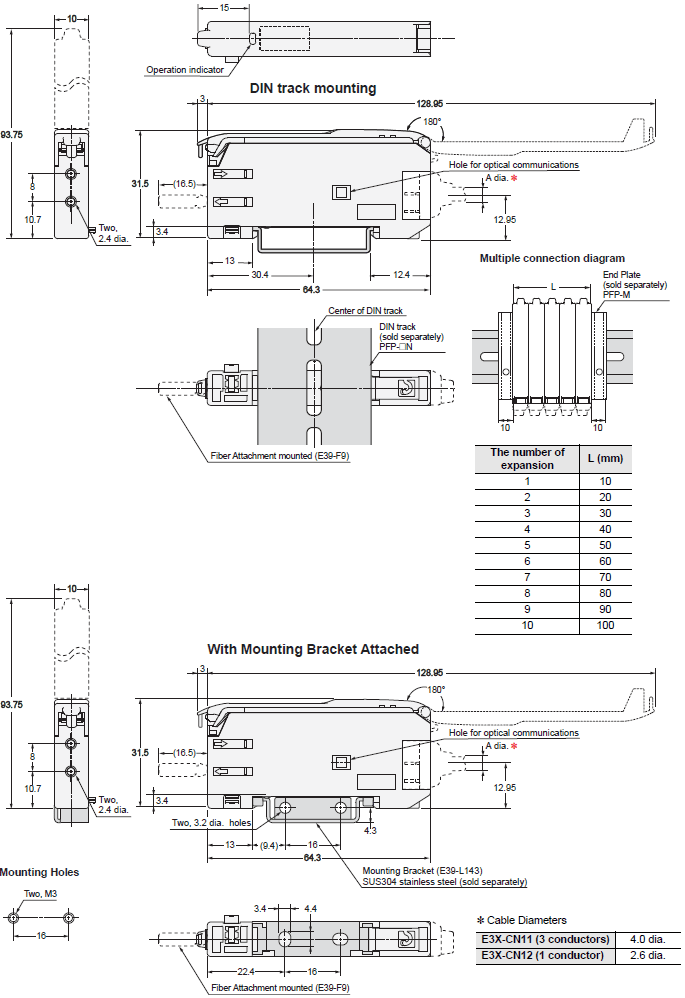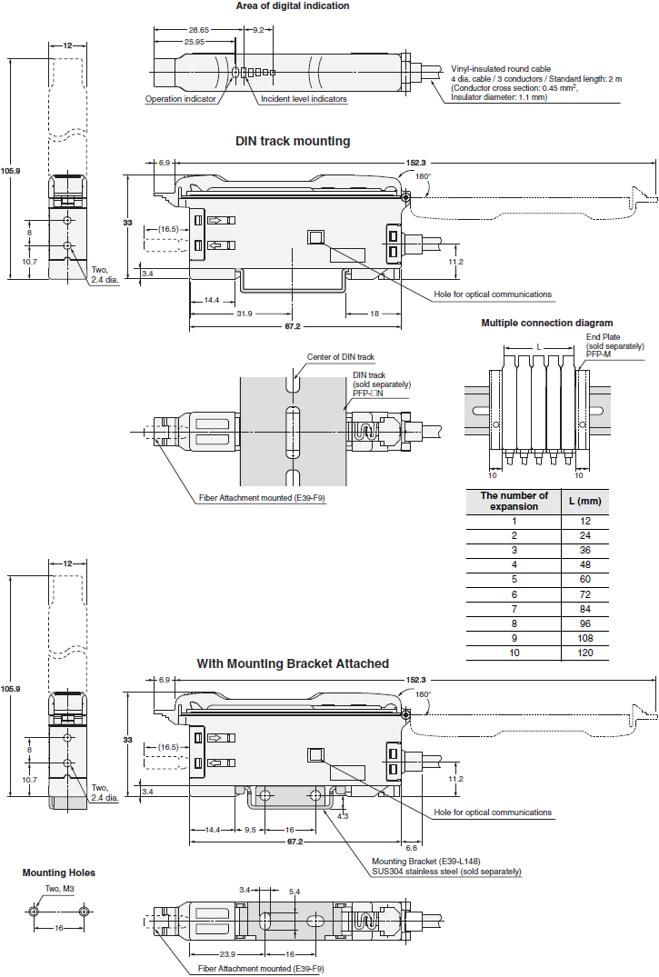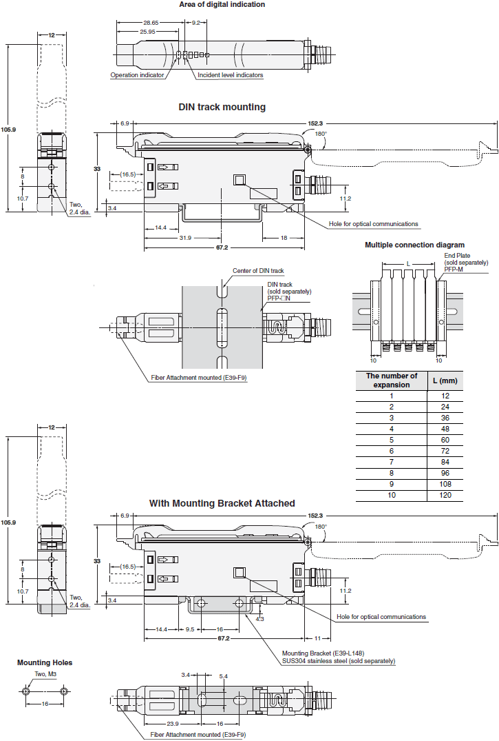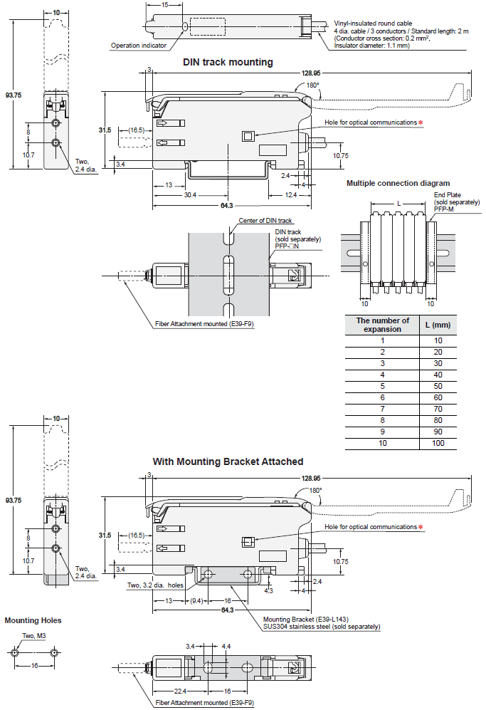 Note: When using E39-L143 Mounting Brackets, there will be small gaps between the Fiber Amplifier Units if they are