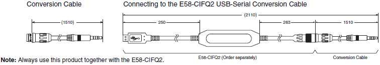 • Setup Tool ports are provided as standard feature. Use these ports to connect a computer to the Digital Temperature Controller. The E58-CIFQ2 USB-Serial Conversion Cable is required to connect to the port on the bottom panel. The E58-CIFQ2 USB-Serial Conversion Cable and E58-CIFQ2-E Communications Conversion Cable are required to connect to the port on the front panel. (You cannot leave either port connected constantly during operation.)