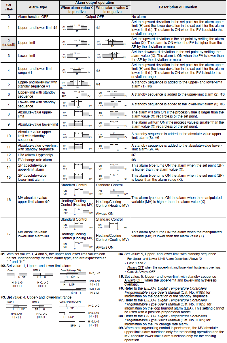 | Alarm SP function | Select from ramp SP and target SP. | |