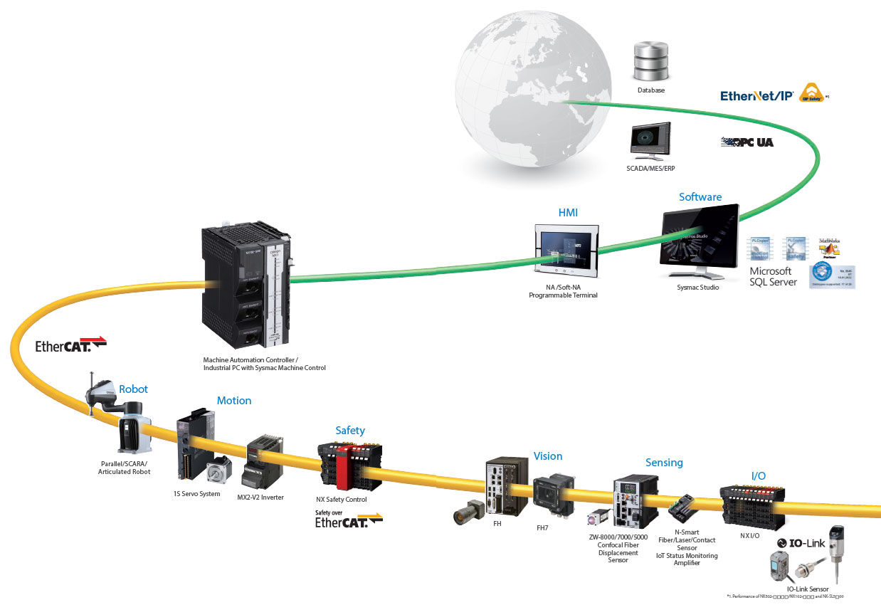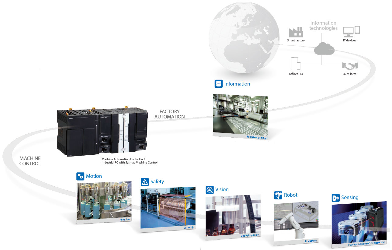 Sysmac is an integrated automation platform dedicated to providing complete control and management of your automation plant. At the core of this platform, the Machine Controller series offers synchronous control of all machine devices and advanced functionality such as motion, robotics and database connectivity. This multidisciplinary concept allows you to simplify solution architecture, reduce programming and optimize productivity.