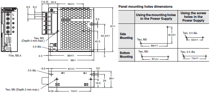 Note: Use a Front-mounting Bracket (S82Y-FSG-60F) when the DIN Rail is not strong enough for your usage environment.