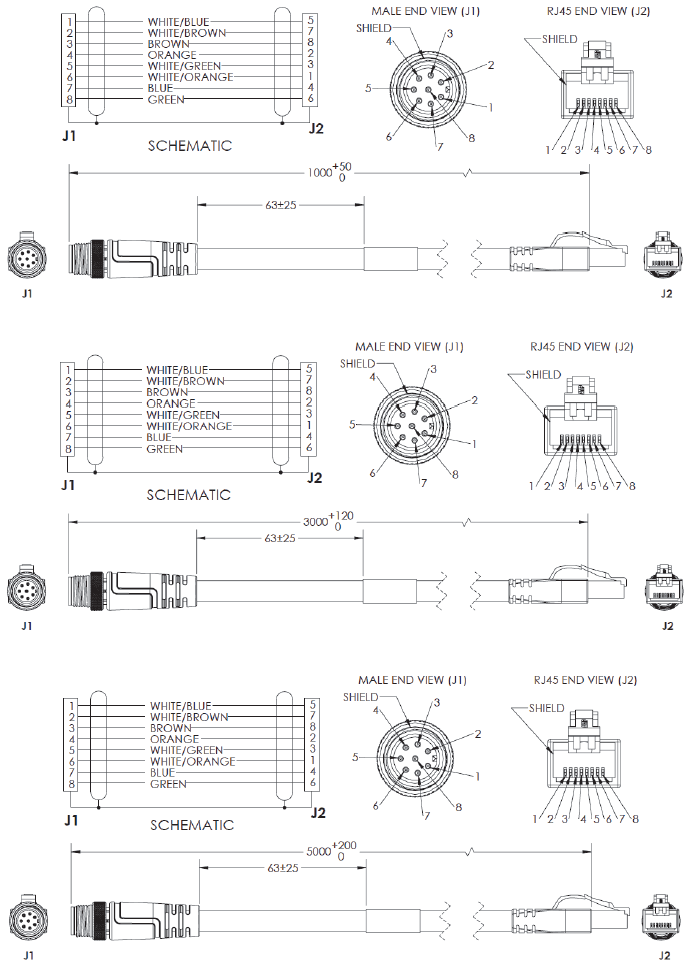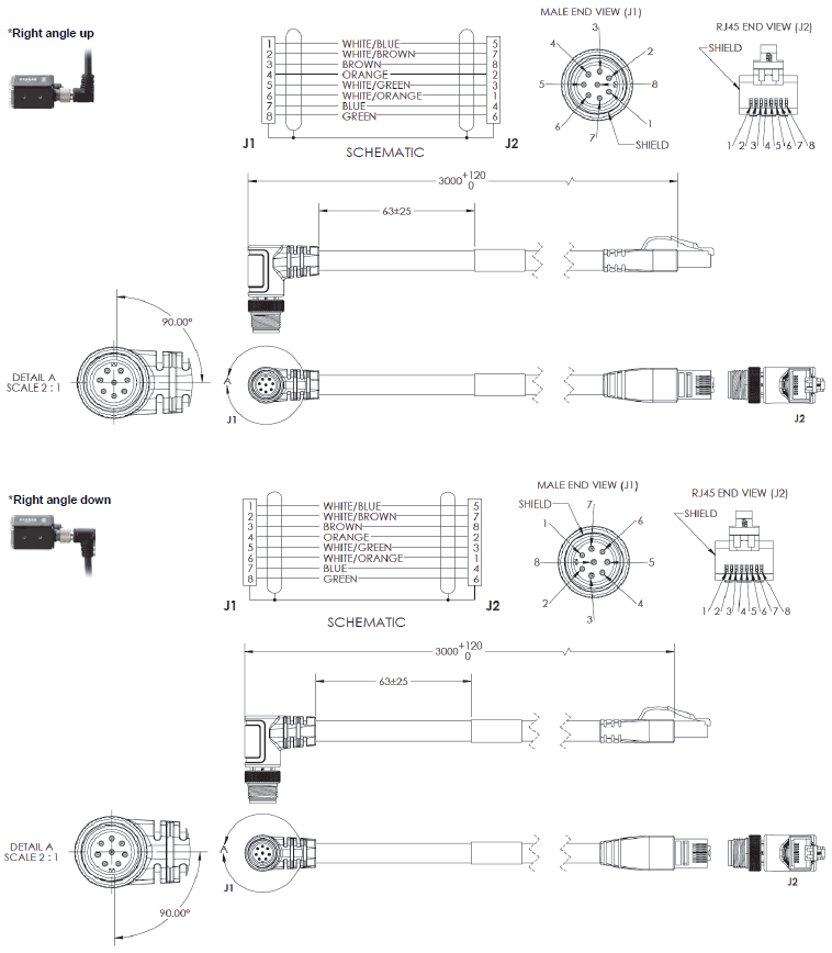 M12 Plug on Camera to RJ45 Connector