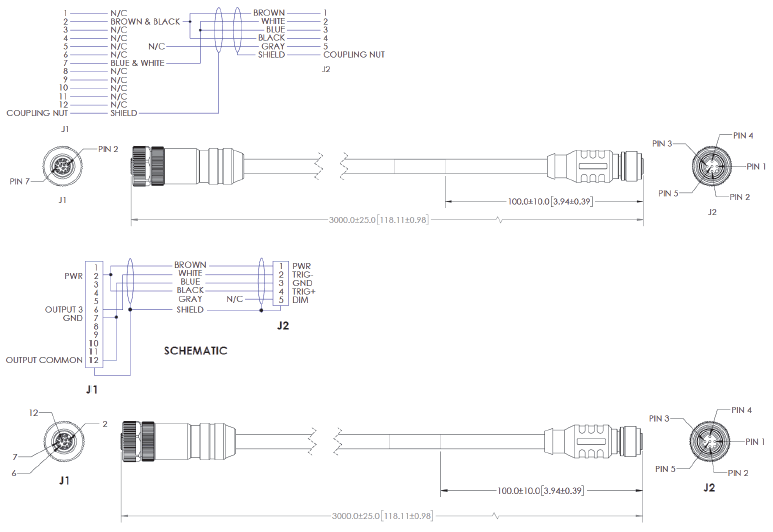 QX-1 M12 to Smart Light Power and Strobe Control Cables – 3 Meters