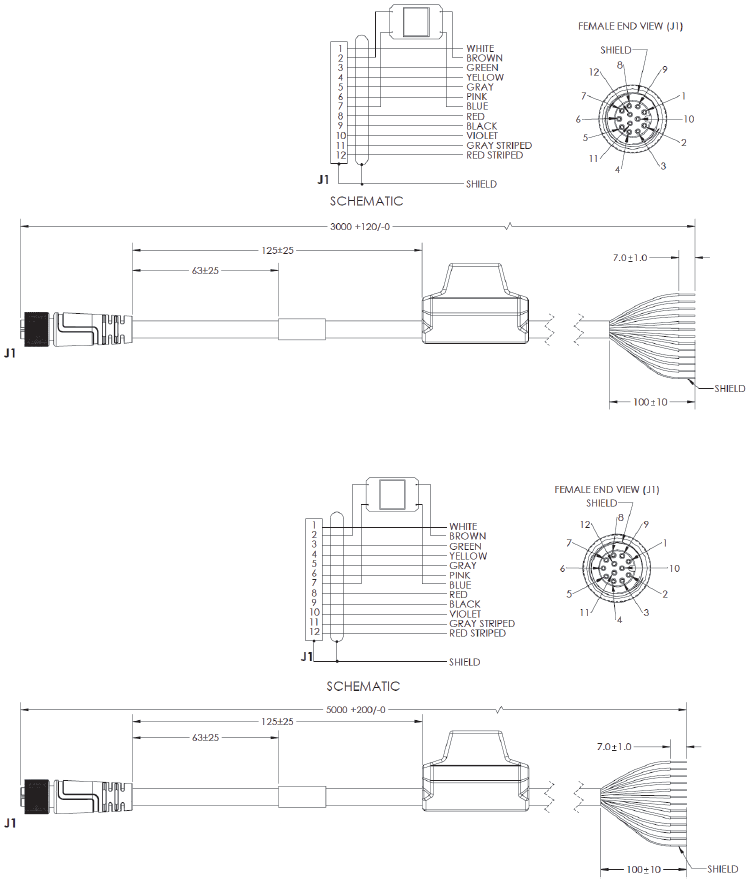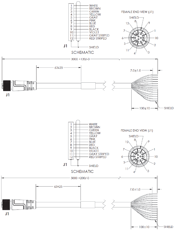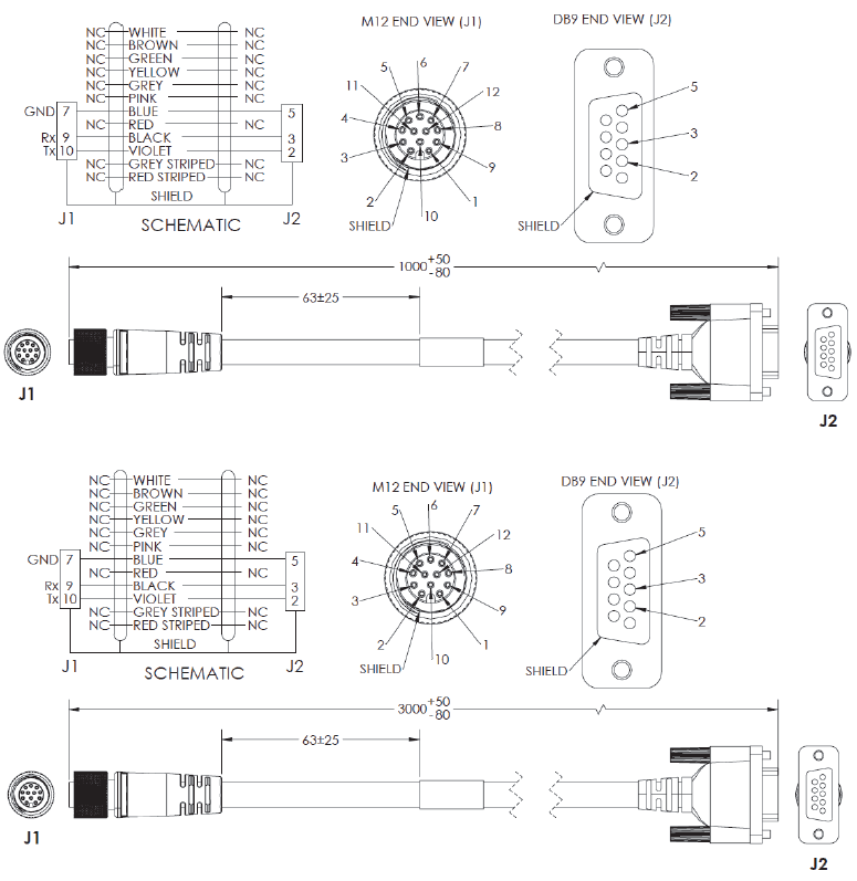 M12 to Flying Leads Cable, Straight Power, IO, RS-232, USB – 3 Meters or 5 Meters