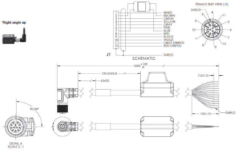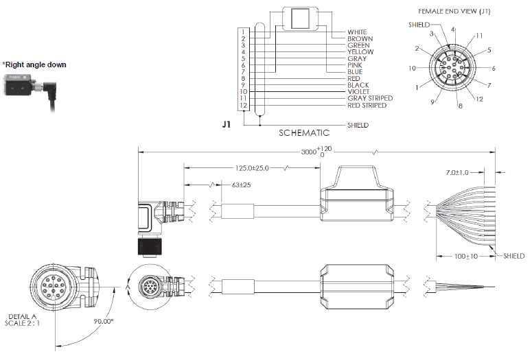 RJ50 to Flying Leads, Right Angle to the Right – 3 Meters