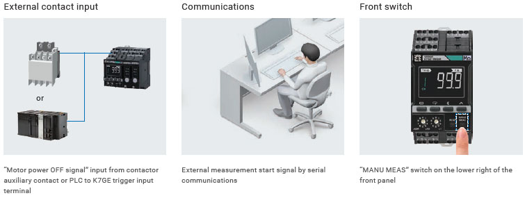 Automatic measurement can be started in the most convenient way in accordance with the equipment conditions, such as via external contact input, communications, or front switch.