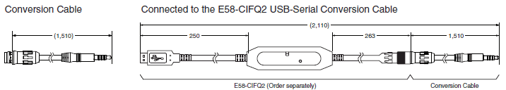 • Setup Tool ports are provided as standard feature. Use these ports to connect a computer to the Digital Temperature Controller. The E58-CIFQ2 USB-Serial Conversion Cable is required to connect to the port on the top panel. The E58-CIFQ2 USB-Serial Conversion Cable and E58-CIFQ2-E Communications Conversion Cable are required to connect to the port on the front panel. (You cannot leave either port connected constantly during operation.)