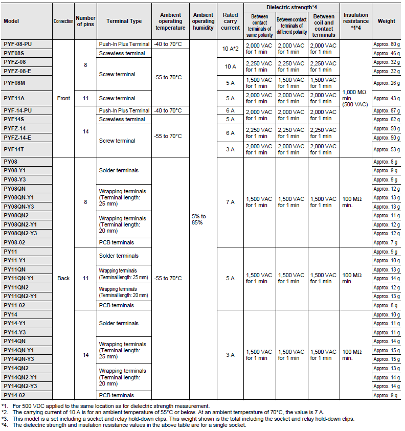 | PYF14S | PYDM-14S[] | 10 A | -40 to 70°C | 5% to 85% |